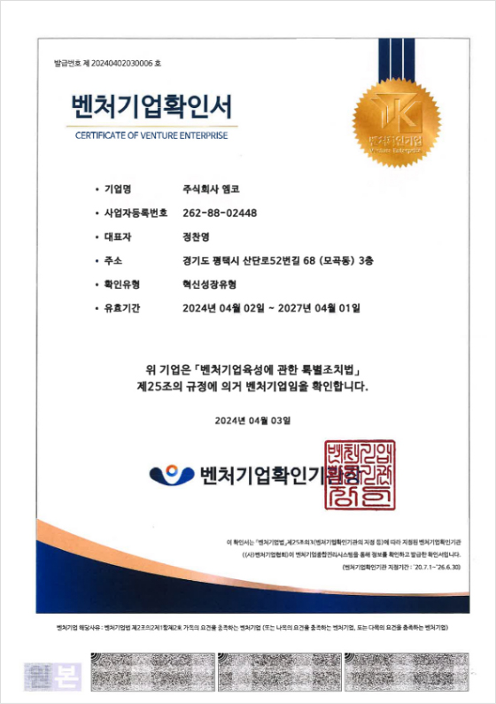 벤처기업인증서